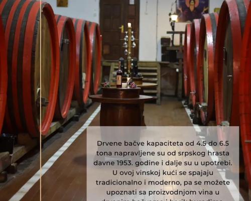 Rimska kuća – Osetite duh drevnog Rima kroz vina koja odležavaju u amforama, čuvajući vezu sa zemljom i prirodom.Kuća Nemanjića – Zakoračite u srednji vek i uživajte u vinima iz drvenih bačava, po tradiciji doma Nemanjica.